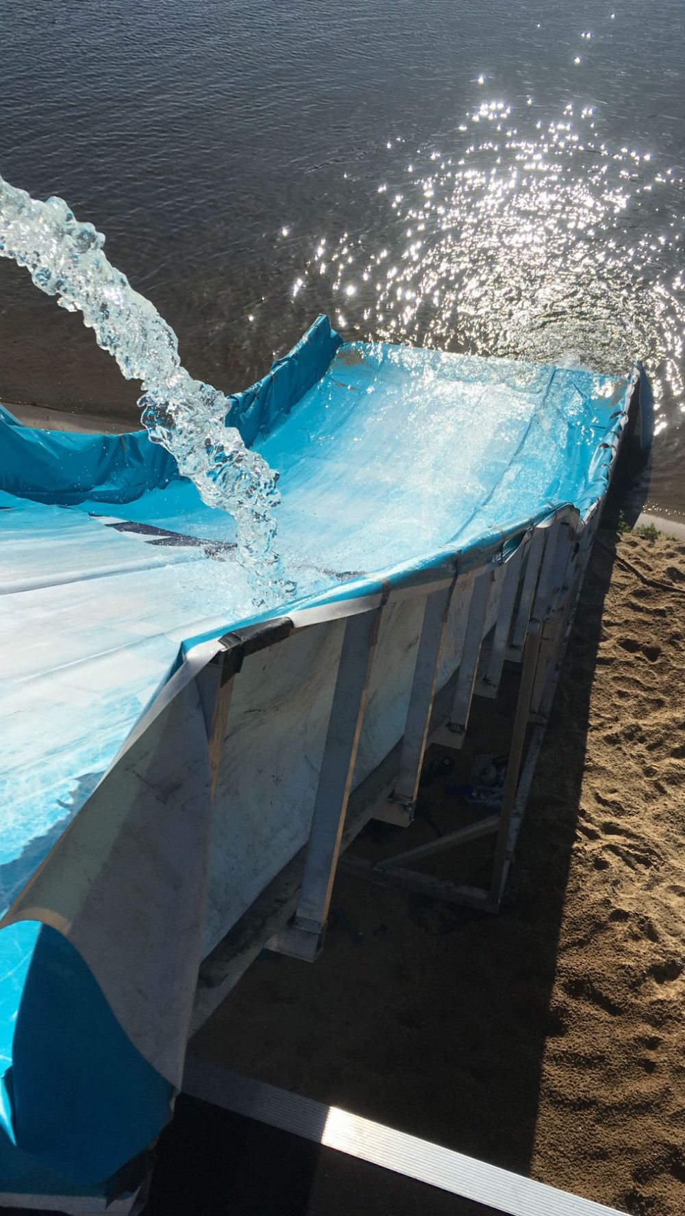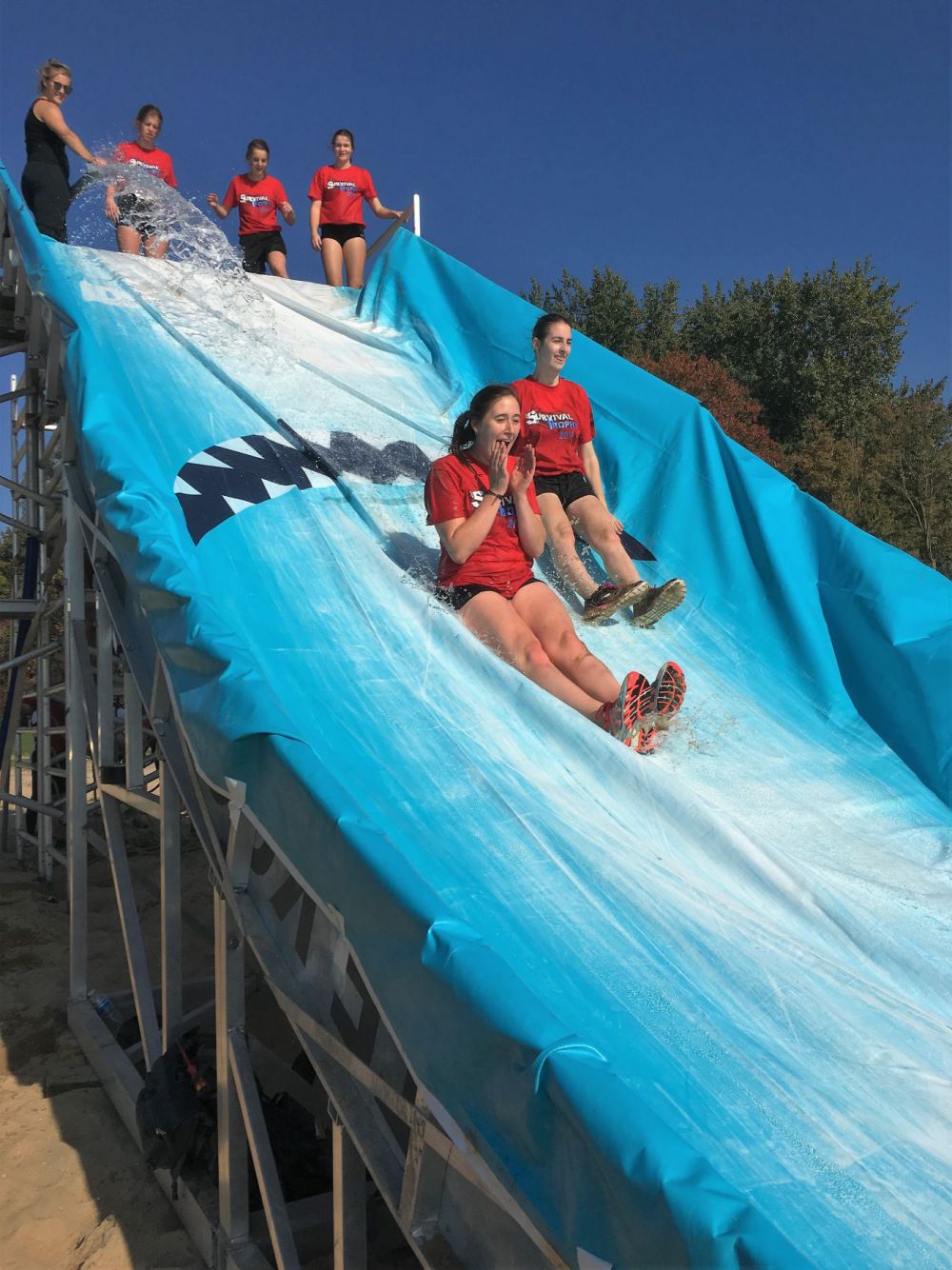 Klim avontuurlijk naar boven om daarna met een rotvaart het water in te glijden. Dit tot wel 4 personen te samen. Hier kom je alles behalve droog uit. Dit is perfect als onderdeel van een Obstakelrun!